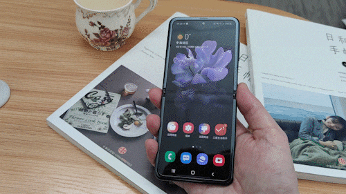 单手关闭三星Galaxy Z Flip还是很顺手的,因为转轴有阻尼,所以关闭的时候,折叠屏会随着按压,缓缓的折叠关闭,给人一种很可靠的感觉。