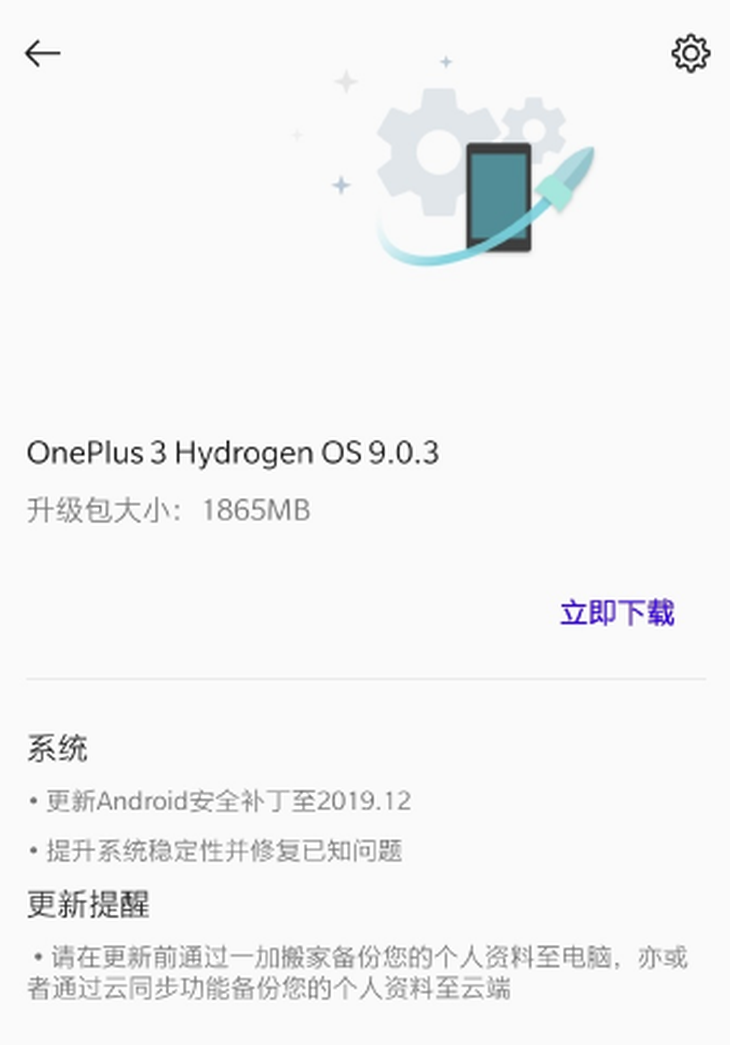 3月5日消息,近日有网友表示,自己的一加3手机获得了系统更新推送。从更新信息来看,此次升级的版本为Hydrogen OS 9.0.3,升级包大小为1865MB。