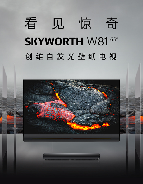 创维W81拥有令人惊叹的工业设计。它采用超薄无缝贴墙的Wallpaper OLED壁纸设计及分体式结构,并利用OLED屏幕自发光、柔性的特点,将屏幕的厚度压缩至4.6mm,超薄的OLED屏体厚度几乎为iPhone 11Pro的一半。这款电视从侧面看上去极为震撼,宛如一张壁纸贴在墙上,让人们再一次摆脱电视机厚重的产品形态印象,彻底颠覆电视形态。