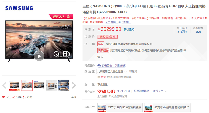 三星Q900 65英寸>>26299元>>购买链接