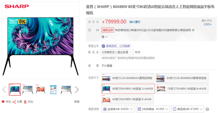 夏普80A9BW>>79999元>>购买链接