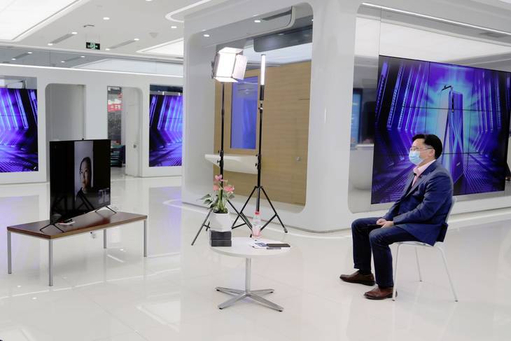 (华为消费者业务手机产品线副总裁郑平方通过荣耀智慧屏接受记者专访)