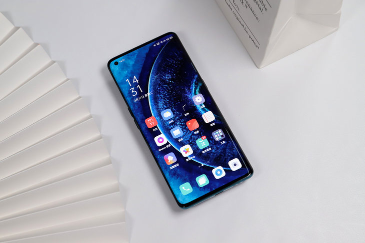 Find X2在外观整体布局跟Find X2 Pro版非常接近,主要区别在于背面相机模组。Find X2目前有陶瓷和玻璃两种机身材质,评测机为碧波版配色,也就是玻璃材质。背面加入了丰富的细节小纹理,非常有质感。