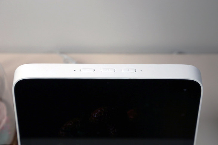 Redmi小爱触屏音箱的设计非常简约,音箱上一共只有三个按键,中间的按键是屏幕开关键,长按则是启动键,左右两侧的按键则是音量调节键。因为屏幕的加入,Redmi小爱触屏音箱的操作更多的是在屏幕上完成的。此外,语音和手势操作也可以取代按键,日常使用中用到按键的机会并不多。