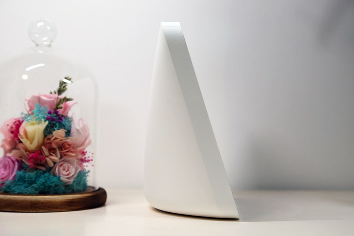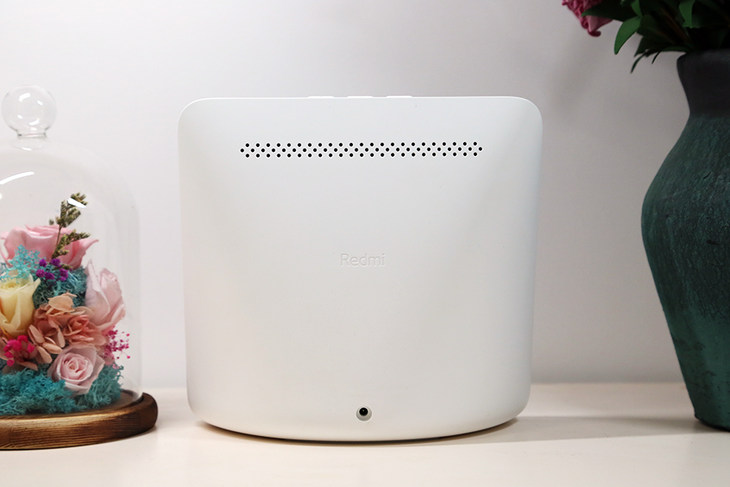 Redmi小爱触屏音箱从底部到顶部逐渐收窄,放置稳定,从侧面看背部是圆润的设计,看起来非常敦实。