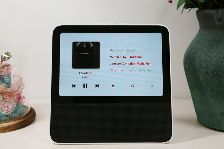 在外观方面,Redmi小爱触屏音箱的一体性非常强,将8英寸的大屏与音箱的发声单元结合在一起,并不会让音箱因为多了一块屏幕而产生突兀感。Redmi小爱触屏音箱采用的是8英寸IPS屏幕,采用全贴合工艺,能够有效减少反光,适合放置在家中的任何位置。