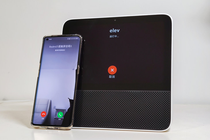 因为摄像头的加入,我们可以使用Redmi小爱触屏音箱与手机、米兔儿童手表、小米电视进行视频通话,音箱与手机通话互相时,需要通过小爱音箱App实现互联,而与其他设备通话时,需要通过输入设备码互联,操作还是比较方便的,一次输入即可。