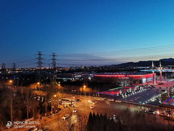 大底传感器的另一个优势就是夜景拍摄。有人说夜晚就应该有夜晚的样子,这一点放在荣耀30S上也是试用的。荣耀30S的夜景模式成像不是提为“傻亮”,而是保留夜晚的整体风格,只是提亮局部暗光的细节。而在噪点控制上会明显更好,画面看上去更纯净,颜色也会更通透一些。