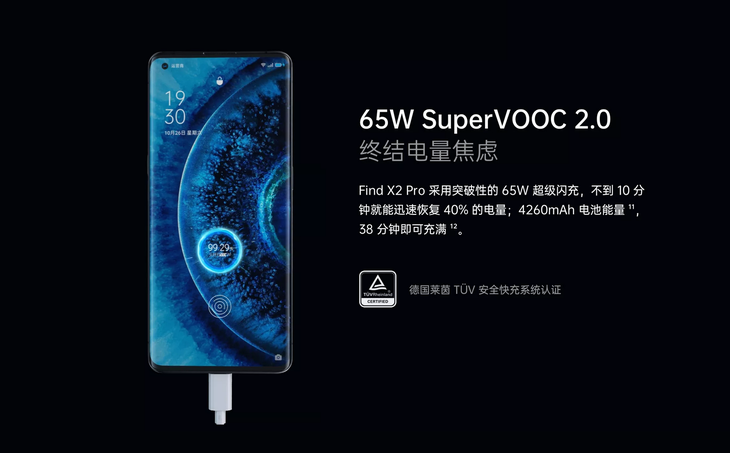 续航方面,Find X2 Pro的电池容量4260mAh,算是中规中矩。不过他搭载的65W SuperVOOC 2.0超级闪充,根据官方数据,只需38分钟即可充满,倒是大大节省了充电的时间。另外其内置的超大尺寸 X 轴线性马达,也能为使用者带来更好的震动反馈体验。