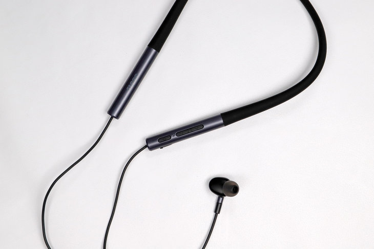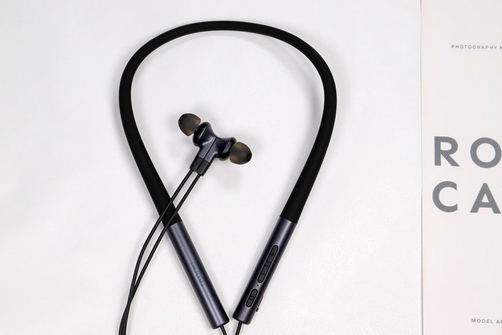 雷柏XS100颈挂式蓝牙耳机在整体外观上与主流颈挂式蓝牙耳机比较接近,项圈采用更容易贴合颈部的弧度弯曲设计。