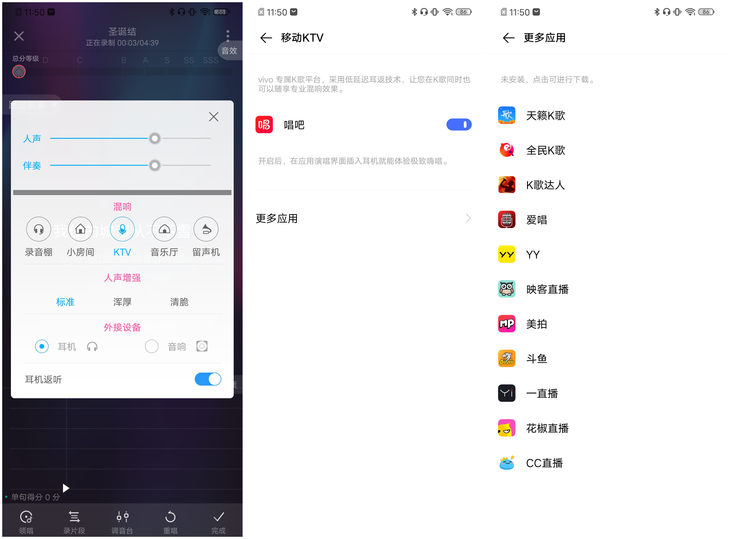 vivo S6支持实时耳返2.0,,能够基于平台底层机制实现低延迟耳返功能,并且自主研发混响、EQ、防啸叫、降噪等技术,可实现低延迟K歌,提升K歌体验。
