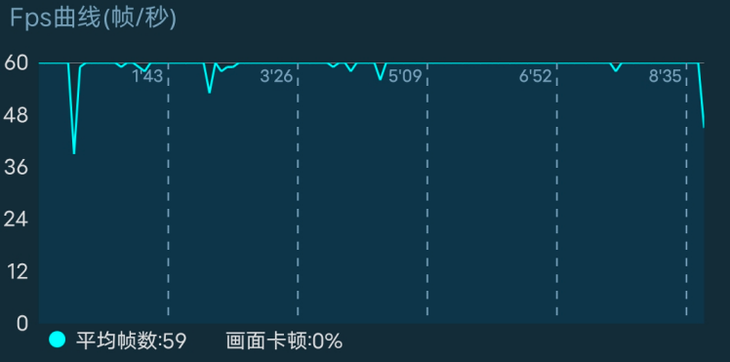 在游戏方面,我们使用《王者荣耀》与《和平精英》两款游戏进行测试,《王者荣耀》的平均帧率达到了59帧,游戏画面流畅。