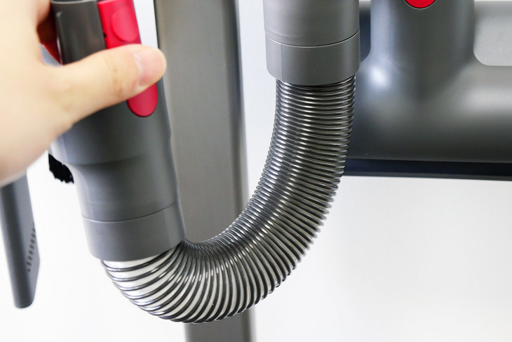 在平时,可以将吸尘器与配件刷头放置在支架上,不但收纳方便,而且也增加了吸尘器的高级感。