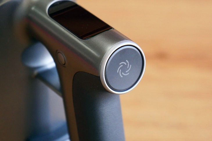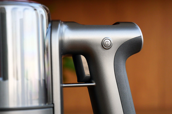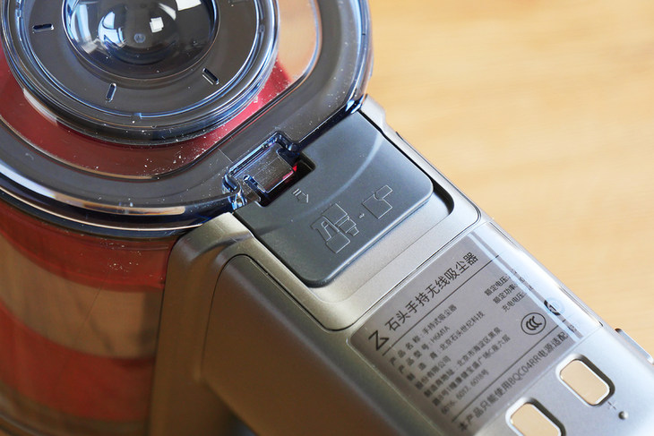 石头手持无线吸尘器H6一共只有三个按键,除了启动键外,还有个圆形的锁定键,在清洁的时候,如果按下这个按键,那么吸尘器会启动持续开启的状态,就不用时刻按住启动键了,方便用户在整屋清洁时使用,减轻的手指的负担。