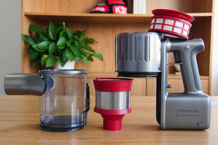 如果当我们需要对吸尘器进行彻底清理时,即可将吸尘器完全拆卸,进行彻底的清理,方便的是尘盒和滤网都是可以使用清水冲洗的,清洁方便,晾干后可以循环使用。