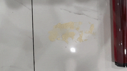 经过测试可以看到,无论是面粉还是小米,都能够被石头手持无线吸尘器H6清理干净。