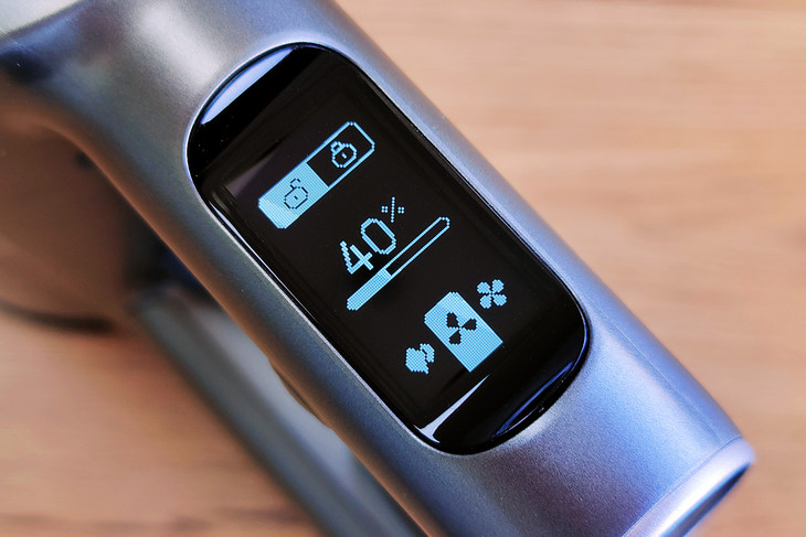 在石头手持无线吸尘器H6上加入了一块OLED屏幕,上面可以显示出吸力的档位,同时也能看到剩余的电量以及剩余续航时间,这样的好处就是用户能够了解到吸尘器的电力情况,当电力不足时及时充电,避免清扫一半时没电的尴尬场景。
