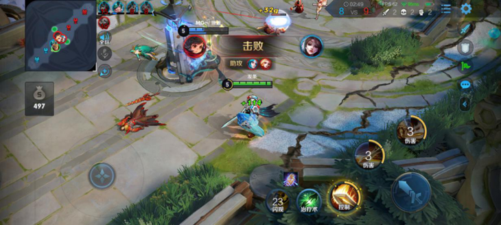 在整个游戏过程中,《王者荣耀》的帧率非常稳定,画面流畅,游戏体验是非常出色的。游戏时,游戏内的帧率显示甚至出现了超过60帧的情况。