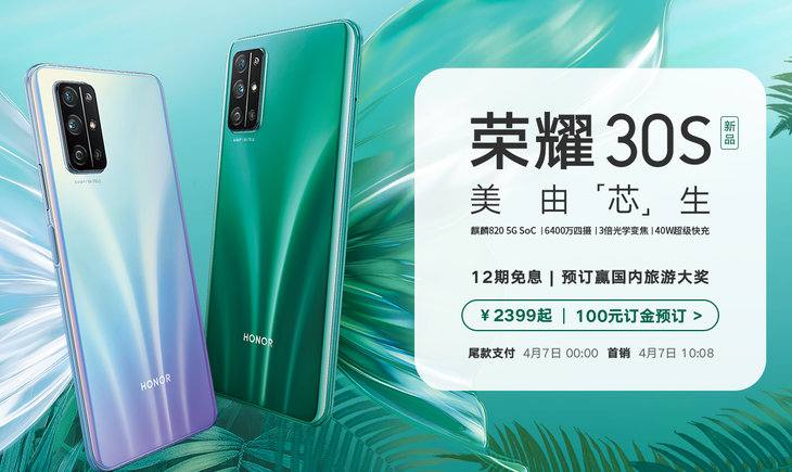 目前荣耀30S已经接受预订,手机将会在4月7日正式首销,感兴趣的用户快去订购吧。