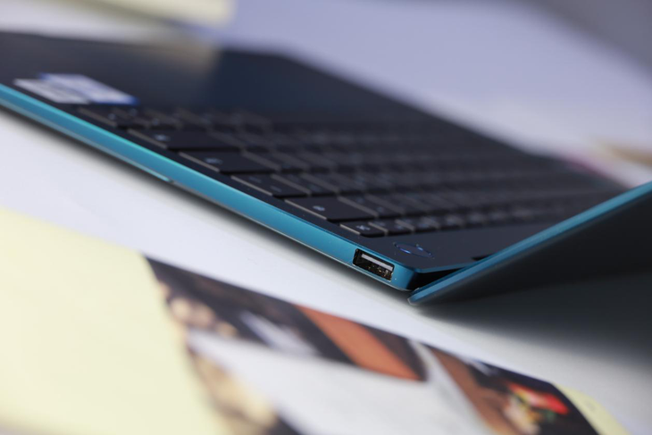 开机键位于键盘面的右前方。这枚按键还拥有一个特别的设计,集成了指纹识别功能。可以一键进入Windows系统桌面。