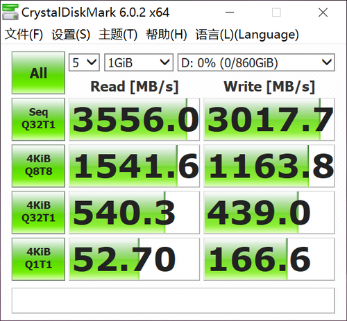 通过CrystalDiskMark这款测试软件的成绩来看,这款固态硬盘的性能已处于PCIe 3.0 x4固态硬盘的优异水平。