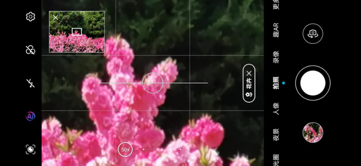 荣耀30 Pro+搭载了5倍光学变焦的潜望式长焦镜头,借助由折射棱镜和横置精密变焦机构组成潜望式光路设计,在强化手机变焦能力的同时,不会影响手机的机身尺寸。在使用长焦镜头时,手机会显示拍照的缩略图,便于长焦的镜头定位。