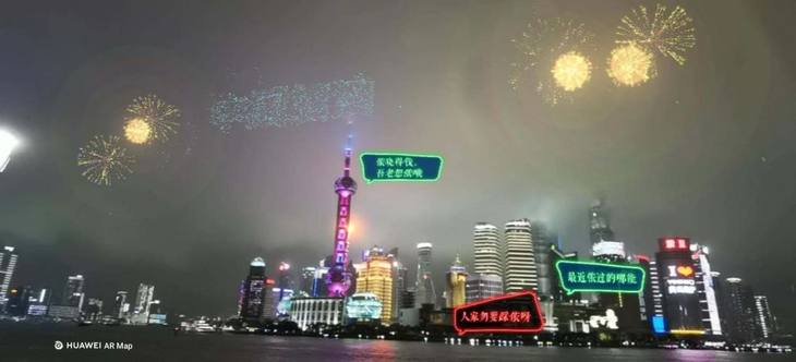 在华为AR地图的视角下,黄浦江边的高楼大厦也可以“开口说话”。