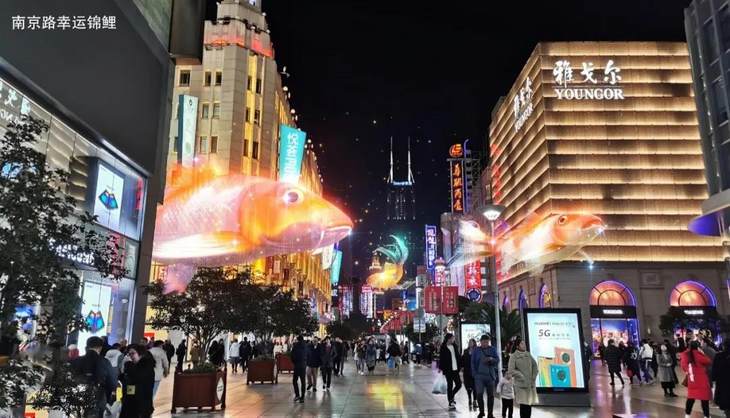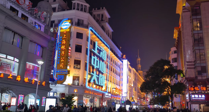 在南京路步行街上漫步,两旁的商场信息一目了然。