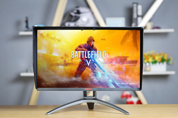 为了保障爱攻AG273QXP的出色画质能够更加优秀地呈现出来,爱攻AG273QXP还专门搭配了一般专业摄影修图显示器才拥有的遮光罩。其遮光罩内里表面采用了高品质的消光绒布,能够有效减少屏幕光源反射的现象。同时遮光罩顶端还设计了一个天窗,用于安装专业的校色仪使用。