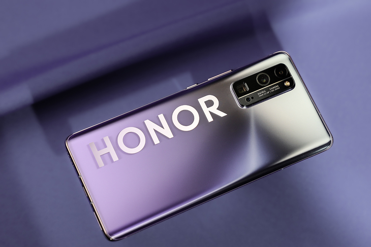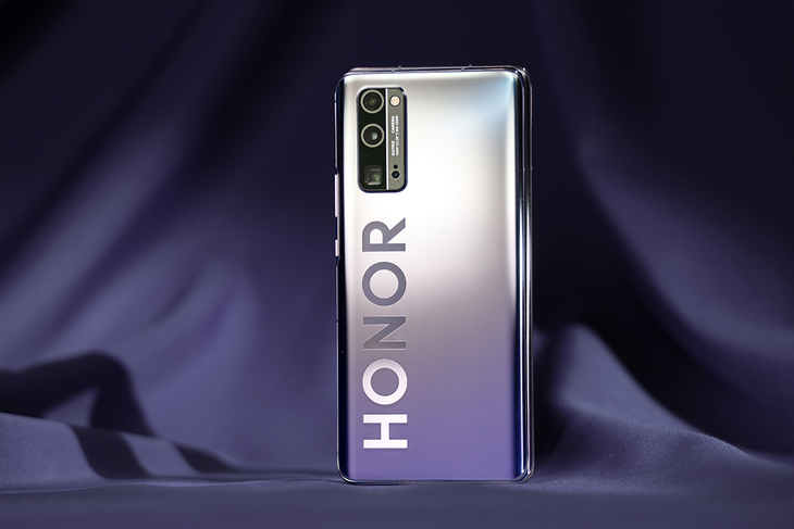 在荣耀30 Pro+的背部,我们可以看到一个非常大的荣耀LOGO,这是太空银与霓影紫两种配色的专属设计,机身背部采用了AG磨砂工艺,带来更好的质感,而LOGO处则是采用了透镜纹理工艺,这种对比让机身背部个性化十足。