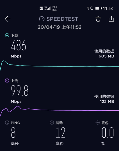 通过实际测试,荣耀30Pro+在5G网络下(限速500Mbps),下载速度为486Mbps,上传速度为99.8Mbps,是非常流畅的。