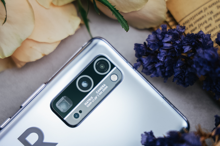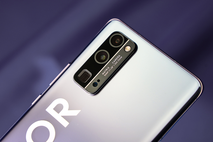 荣耀30 Pro+采用了后置三摄镜头,采用了矩阵式的排列,荣耀30 Pro+利用银色纹理将相机的相框一分为二,并且在右侧添加纹理镀膜,让镜头部分的设计更有层次感。荣耀30 Pro+的镜头设计与机身背部的LOGO可以很好的结合在一起,让两者看起来都不突兀。