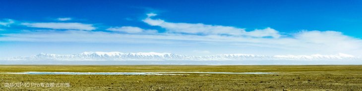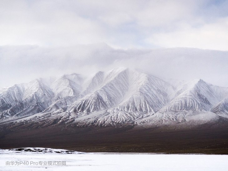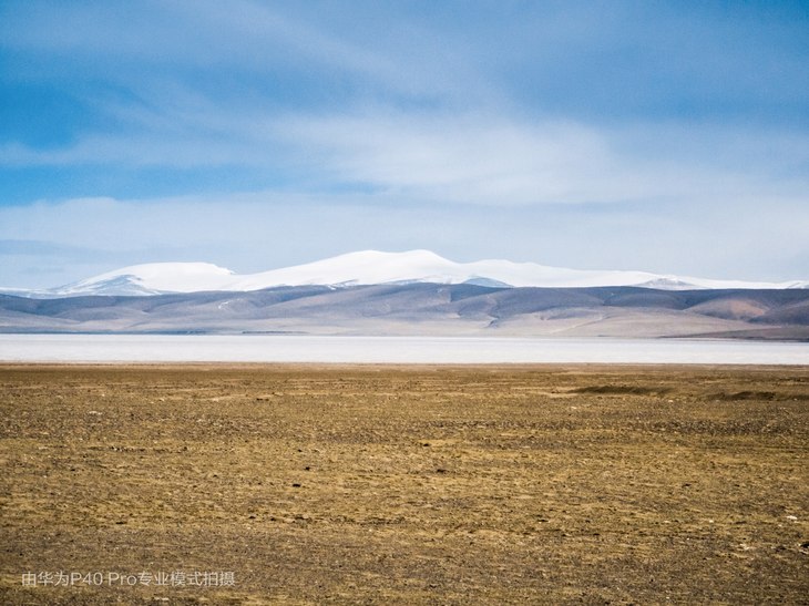 图说:冰封的卓乃湖。在每年的6-7月,卓乃湖会迎来近十万只藏羚羊前来产仔,但在湖面依然被冰封的4月份,这里罕有动物的踪迹,远处的山脉属于可可西里山脉。配合使用华为P40 Pro的变焦功能,可以将远处的风景拉的更近。