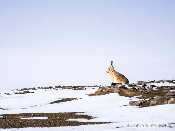 图说:可可西里无人区可以见到野兔,尽管印象中兔子胆小怕人,但在可可西里,野兔是为数不多的可以较近距离拍摄的动物。本片使用华为P40 Pro变焦拍摄。