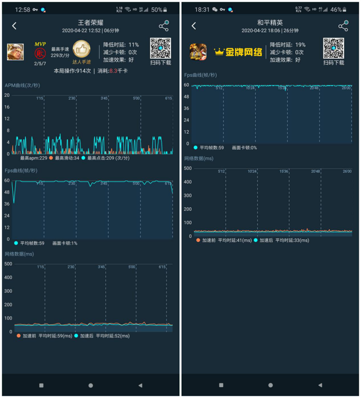有了出色的性能作为支撑,用三星S20 Ultra玩游戏自然是没有问题,通过测试,三星S20 Ultra运行《王者荣耀》以及《和平精英》两款游戏的平均帧率能够达到59帧,游戏画面非常流畅。