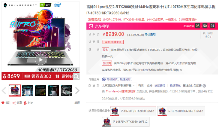 领券立减300元!雷神911Pro钛空2代游戏本热卖