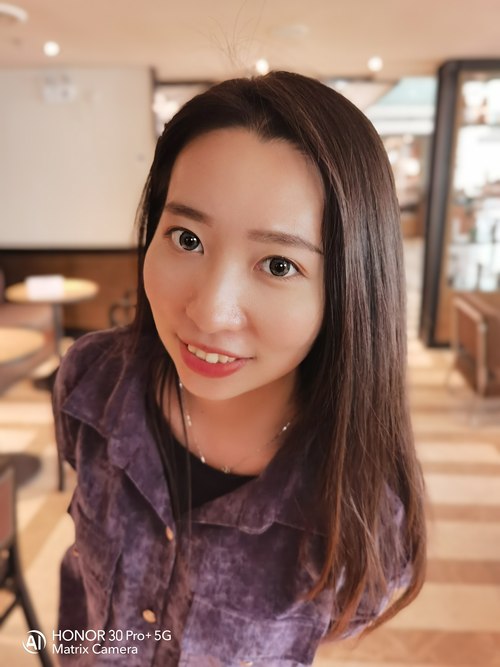 荣耀30 Pro+的前置摄像头有两枚,分别为一枚3200万高清主摄和一枚800万超广角镜头,从自拍的照片来看具备非常好的色彩表现,能够拍出漂亮悦目的肤色。荣耀30 Pro+的前置双摄像头还可获取人物与背景的深度信息,手机能够让人物与背景之间很好地区别开来,背景也有漂亮的模糊渐变层次,整体的散景模拟效果看起来更加逼真,从而拍出更加自然漂亮的人像虚化效果。