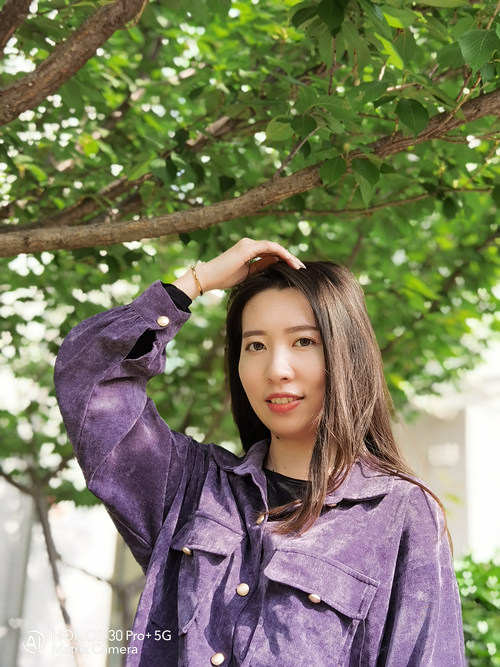 首先在使用手机主摄人像模式下,荣耀30 Pro+的整体观感非常好,色彩与对比度方面也很自然真实。现在的智能手机基本都具备人像模式,大多数手机人像模式的一大特点就是通过算法和机内合成,来营造出更有层次感和空间感的人像照片,而这主要体现在被摄人物主题的清晰度、背景虚化程度以及焦点到模拟的浅景深焦外过渡是否自然。但从这次使用荣耀30 Pro+拍摄的人像照片来看,在这方面这款手机处理的非常出色,人物主题焦点为止清晰锐利,背景虚化十分自然,即便是放大细看也很难找到合成的破绽,照片很有使用单反相机搭配大光圈镜头的质感。