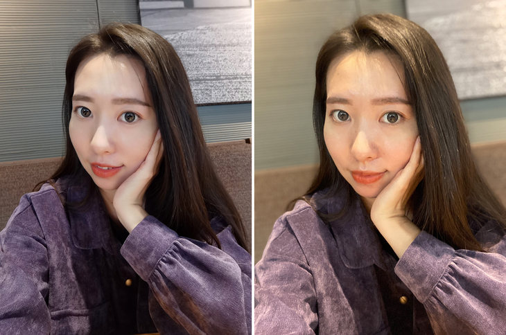 在室内光线变暗并且光源比较复杂的环境下,荣耀30 Pro+对于肤色的还原要更为准确,拍摄这组照片时室内的光源为暖色的顶灯,iPhone11 Pro Max则很“真实”的再现了整体环境色调,包括人物肤色。另外,荣耀30 Pro+的全像素8核对焦在暗光环境下的对焦速度与准确度基本与在户外一致,完全没有反复对焦或拉风箱的情况出现,能都非常迅速的将对焦点锁定在人物面部。