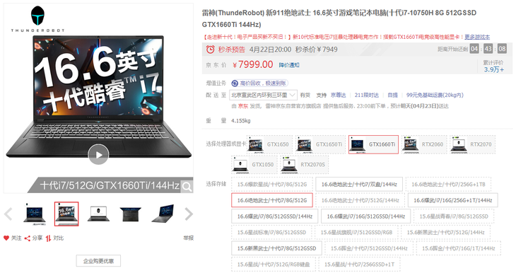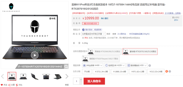 雷神911Pro晖金2代游戏本定位高端。它采用了4.7mm微边框设计,屏占比83%,更诱人的是,这块显示屏的刷新率高达144Hz,这在一些追求流畅画面的游戏中体现的尤为明显,在1920×1080分辨率下还拥有72%