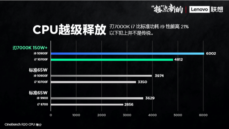性能方面,全新的产品均升级到了第10代英特尔®酷睿TM 处理器,高搭载GeForce® RTX 2080 SUPER™显卡,满足用户对性能的追求。同时,在全新ITC 3.0散热系统和原生8项供电主板的支持下,全新拯救者刃系列产品搭载的i7处理器比标准功耗下的i9处理器性能表现更加强大,CPU实现越级释放。刃7000K 2020在散热上,采用了新一代120风扇以及150W的5热管散热器,整体散热效果比120mm水冷还要好,满足广大玩家的产品需求。而全新的刃9000K 2020上则是采用了170W的240水冷散热器,提供更强大的散热降温能力,助力硬件性能的全面发挥,为发烧级用户带来优异体验。
