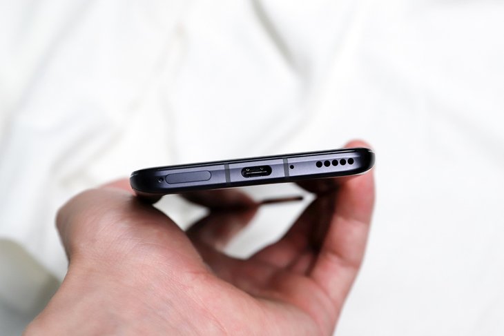 荣耀30背面为3D曲面玻璃,手感圆润舒适。中框顶部和底部做了凹槽处理,提升整体轮廓感,边缘处也做了轻微的弯曲处理,不会有割手的感觉。