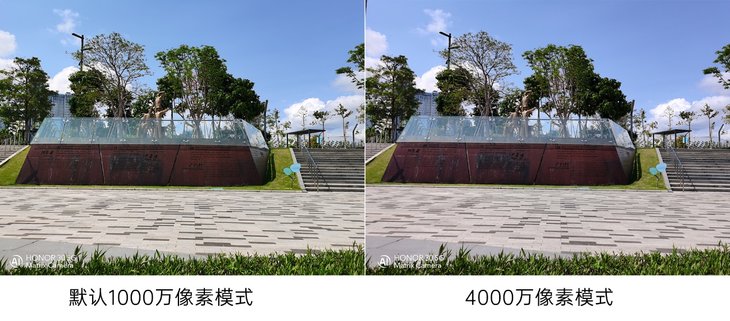 如果你对细节要求比较高,还可以开启高像素模式,能够生成一张4000万像素的照片,能够保留更加丰富的细节。从上面对比图可以看到,两种模式下的样张整体成像风格相差不大。