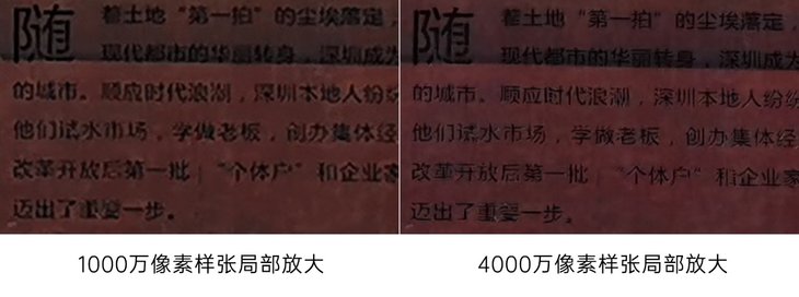 通过局部放大对比可以清晰看到,4000万像素模式下的样张细节表现力更强,放大后文字仍旧清晰可以见,照片整体解析力会有明显提升,也能给后期带来更大空间,特别注重照片细节表现的朋友可以开启高像素模式。