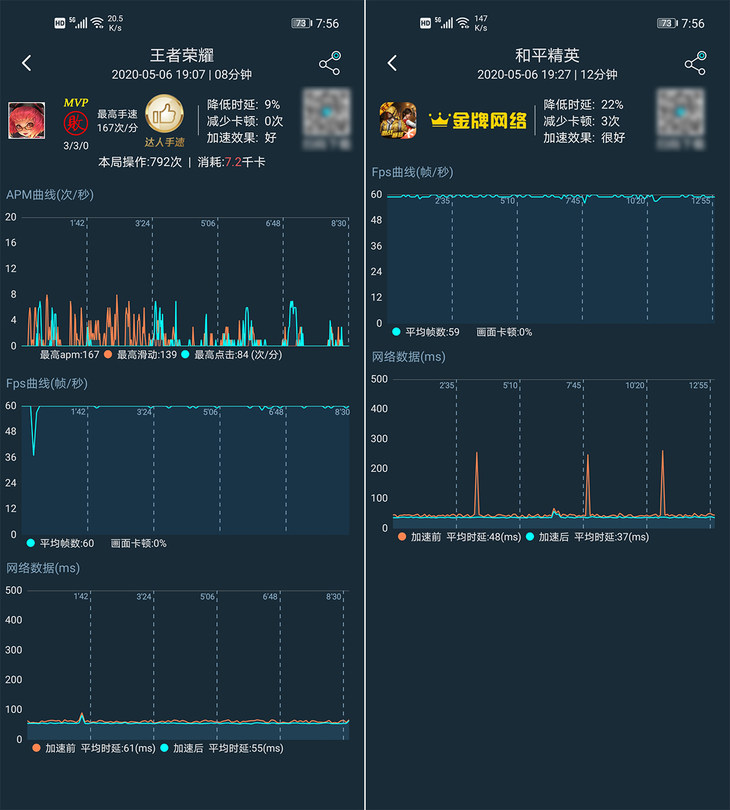 游戏部分我们选取《王者荣耀》、《和平精英》这两款主流游戏进行测试,并且通过软件记录平均帧率。在特效全开的设置下,根据软件记录的结果,《王者荣耀》平均帧率为60帧,《和平精英》平均帧率为59帧,游戏全程都能保证稳定的帧率,可以获得很流畅的游戏体验,轻松满足用户日常游戏需求。