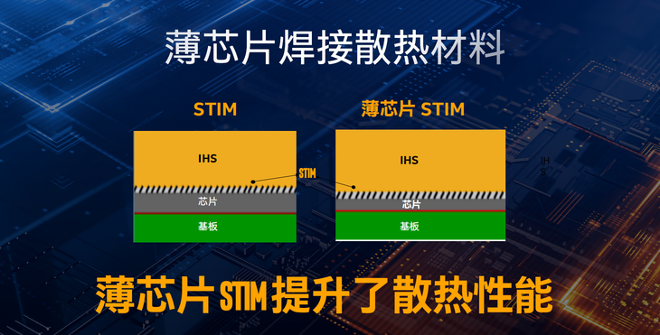 第十代智能英特尔酷睿S系列处理器还对散热设计进行了优化。其采用了薄芯片焊接散热材料。它的芯片设计得更薄了,以至于在处理器内部空间不变的情况下,能够焊接更厚的散热材料,进而实现更高效的散热效能。
