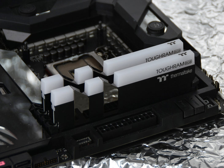Z490平台能够支持更高的内存频率。例如此次先发评测选用的华硕ROG MAXIMUS XII FORMULA主板就能够支持高达DDR4-4800MHz+的内存超频频率。因此,笔者为此次测试平台选用了Tt ToughRam RGB DDR4 4400 16GB(8Gx2)内存套装,它是Tt的优异内存产品,能够充分释放新一代平台的强大性能。