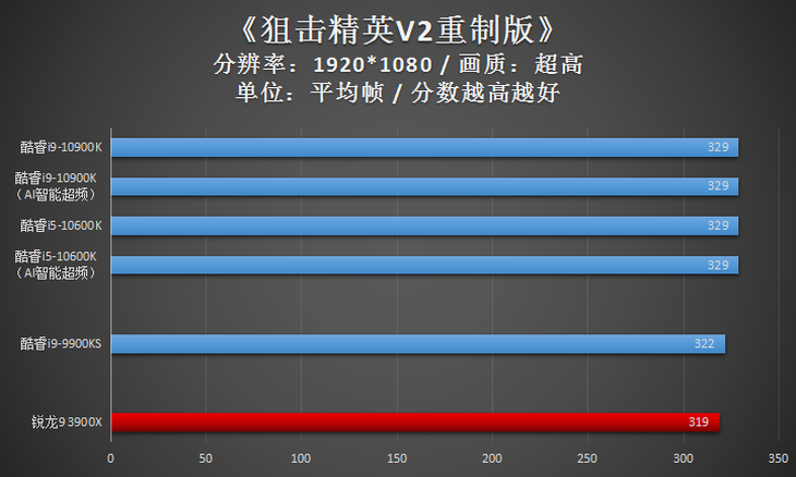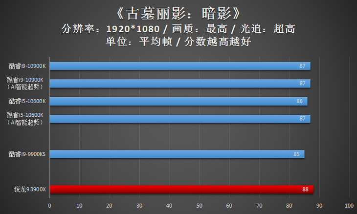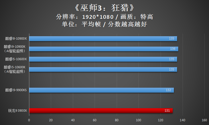 此外,即使是酷睿i5-10600K这款中端CPU,其游戏性能也已全面优于上一代旗舰级的酷睿i9-9900KS。