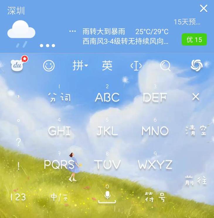 百度输入法行业先发天气皮肤,输入键盘上也能看天气