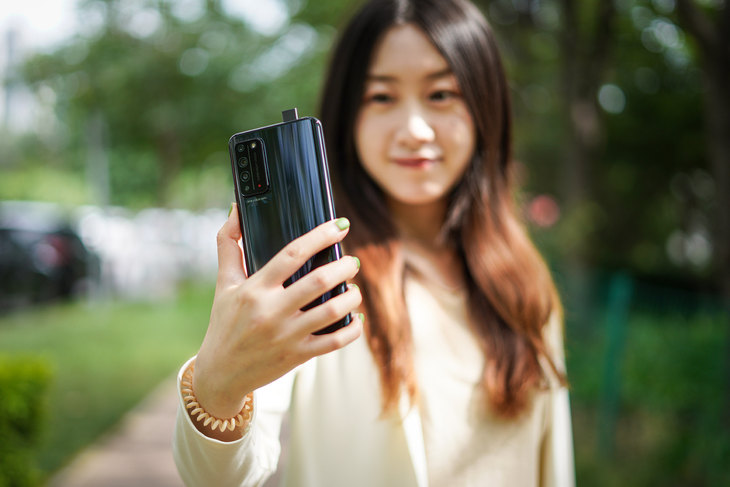 对于自拍来说,荣耀X10也非常强大和可靠。升降式前置摄镜头可以让我们在自拍时更加专注看镜头,另外手机前置高清摄像头还搭载1600万像素传感器,支持像素四合一,自拍时不仅仅脸部睫毛清晰、头发等细节可见,自拍背景等细节也能淋漓尽致的展示。
